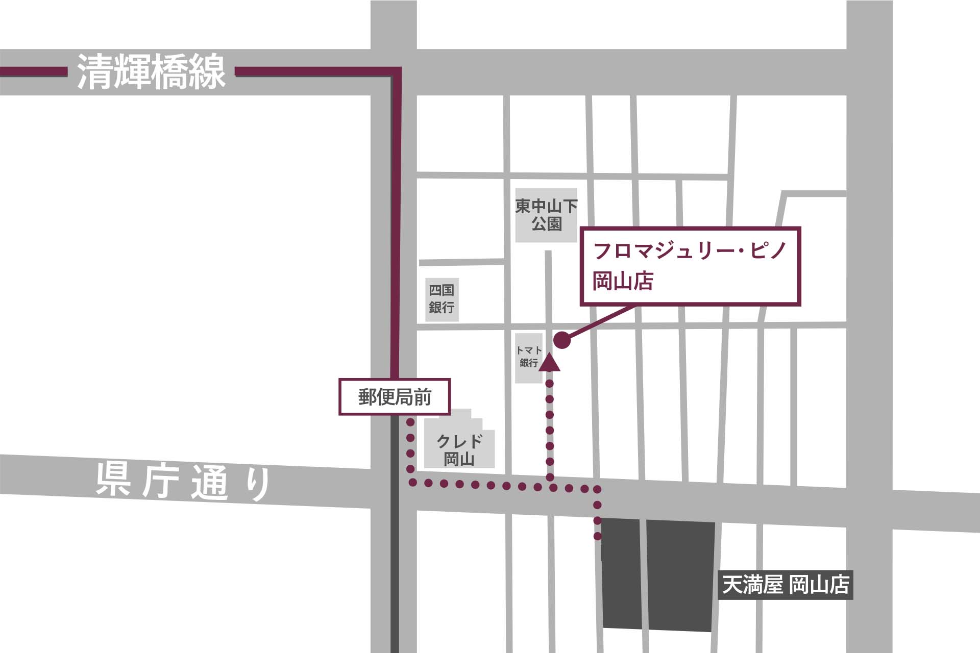 岡山天満屋から徒歩1分の場所にあります。