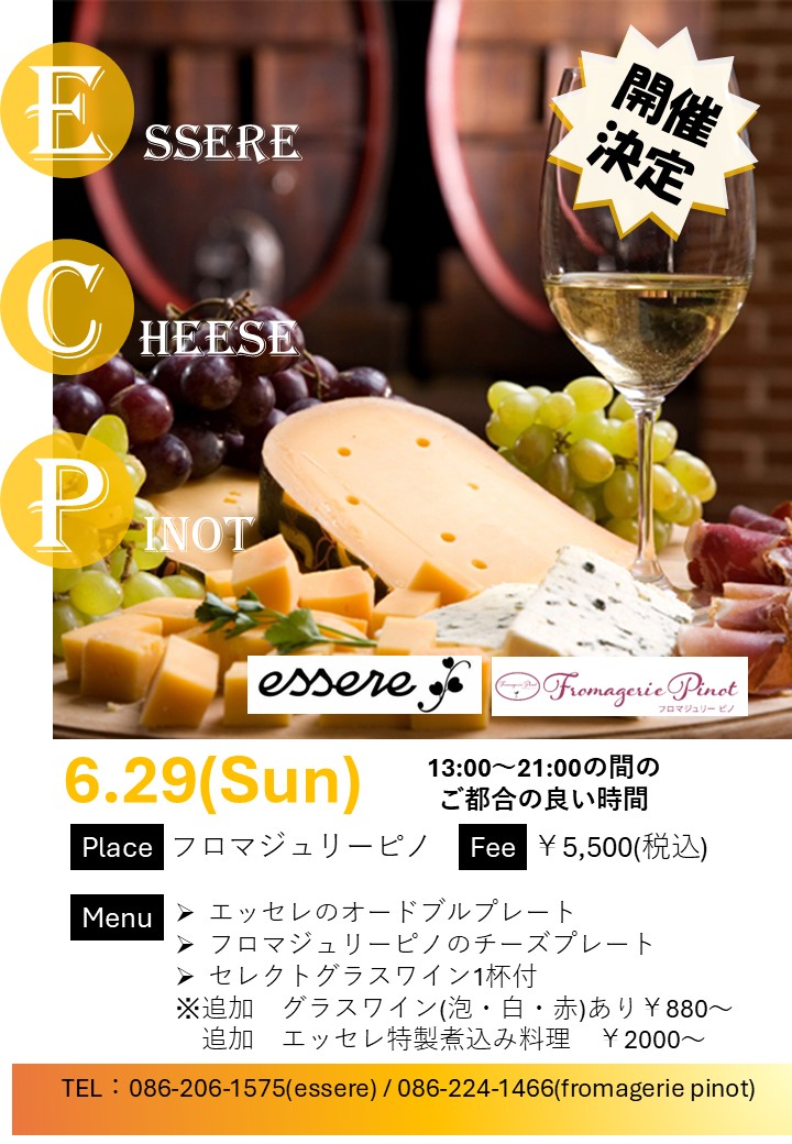 昨年開催しましたレストランEssereさんとのチーズコラボイベント第2弾を開催いたします!